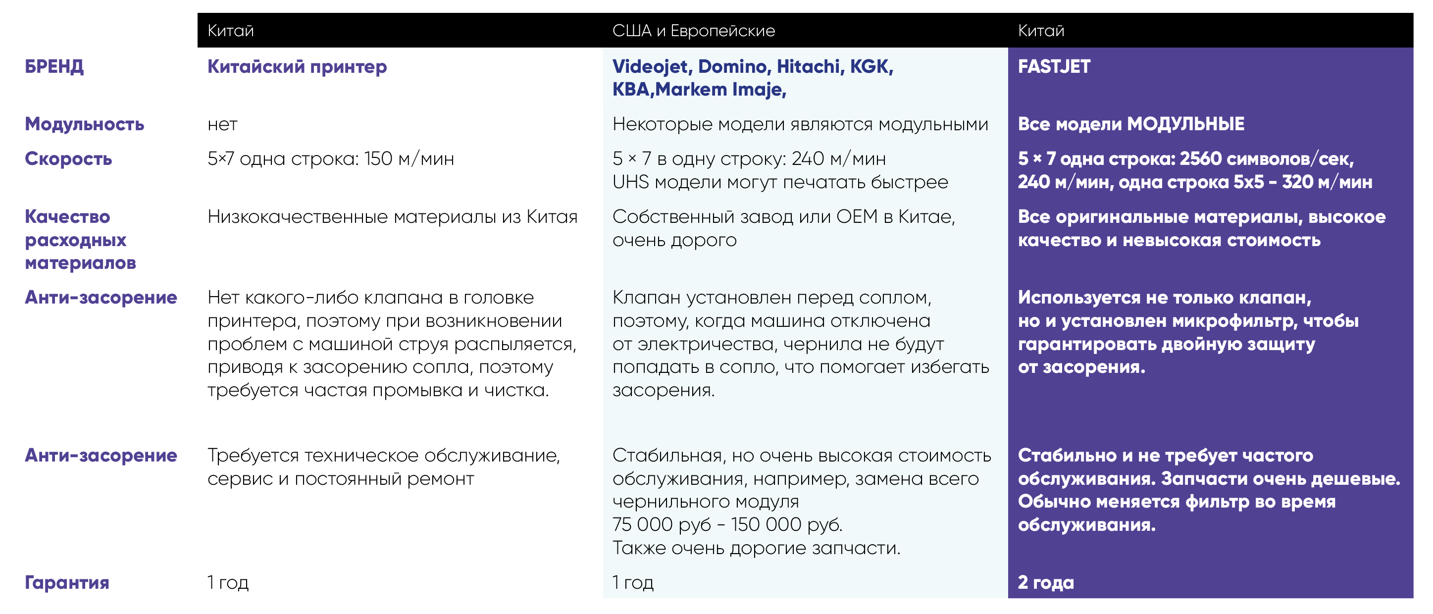 Технические характеристики принтера маркиратора Fastjet: